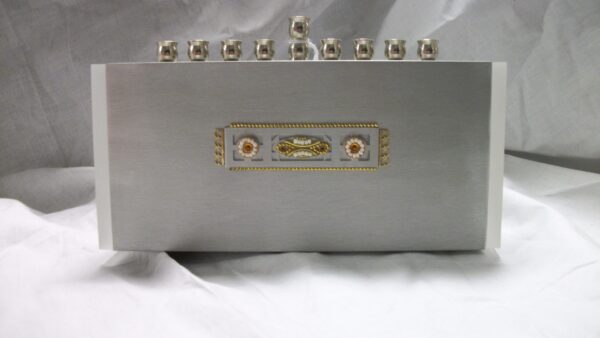 Silver and Black circular travel menorah