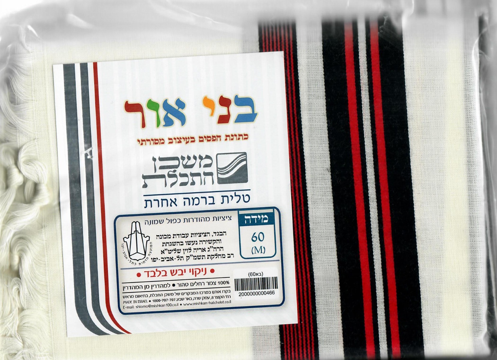 Sometimes known as the Tabernacle Tallit, this colorful 100% wool tallit features colors that were used in the Mishkan (Tabernacle). Comfortable, lightweight fabric. Made in Israel by Mishkan Hatchelet.