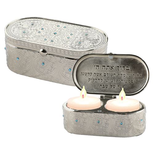 Be the first to review “Travel Size Candlesticks light blue stones “filigree””